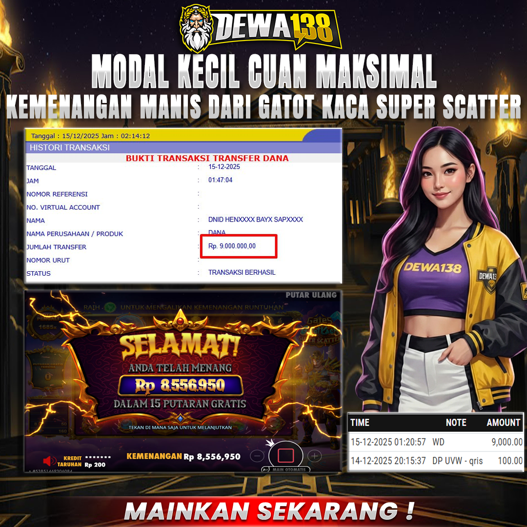 Cek sendiri DEWA138 tempat game jackpot dalam waktu singkat cuma di sini depo 100k bisa withdraw 9 juta Sudah di kasih bukti bukan janji yakin ga main?Rugi Dong!